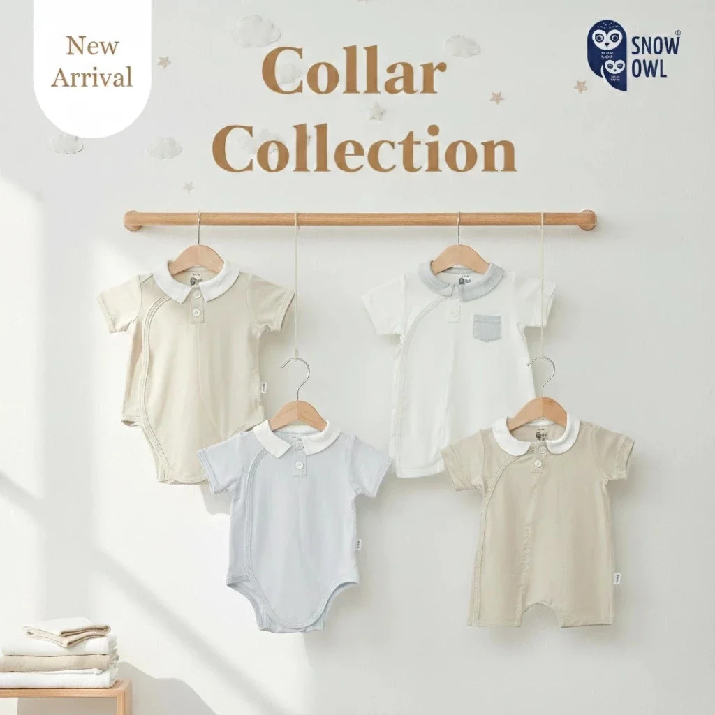 คอลเล็คชั่นใหม่ Collar Collection จาก Snow Owl ดีไซน์พรีเมี่ยมเพิ่มคอปกลงในชุด Body Suit ให้ลุคเรียบร้อย หรูละมุน แต่งตัวลูกง่าย ได้สไตล์ Luxury & Premium เหมาะสำหรับเด็กแรกเกิดถึง 6 เดือน