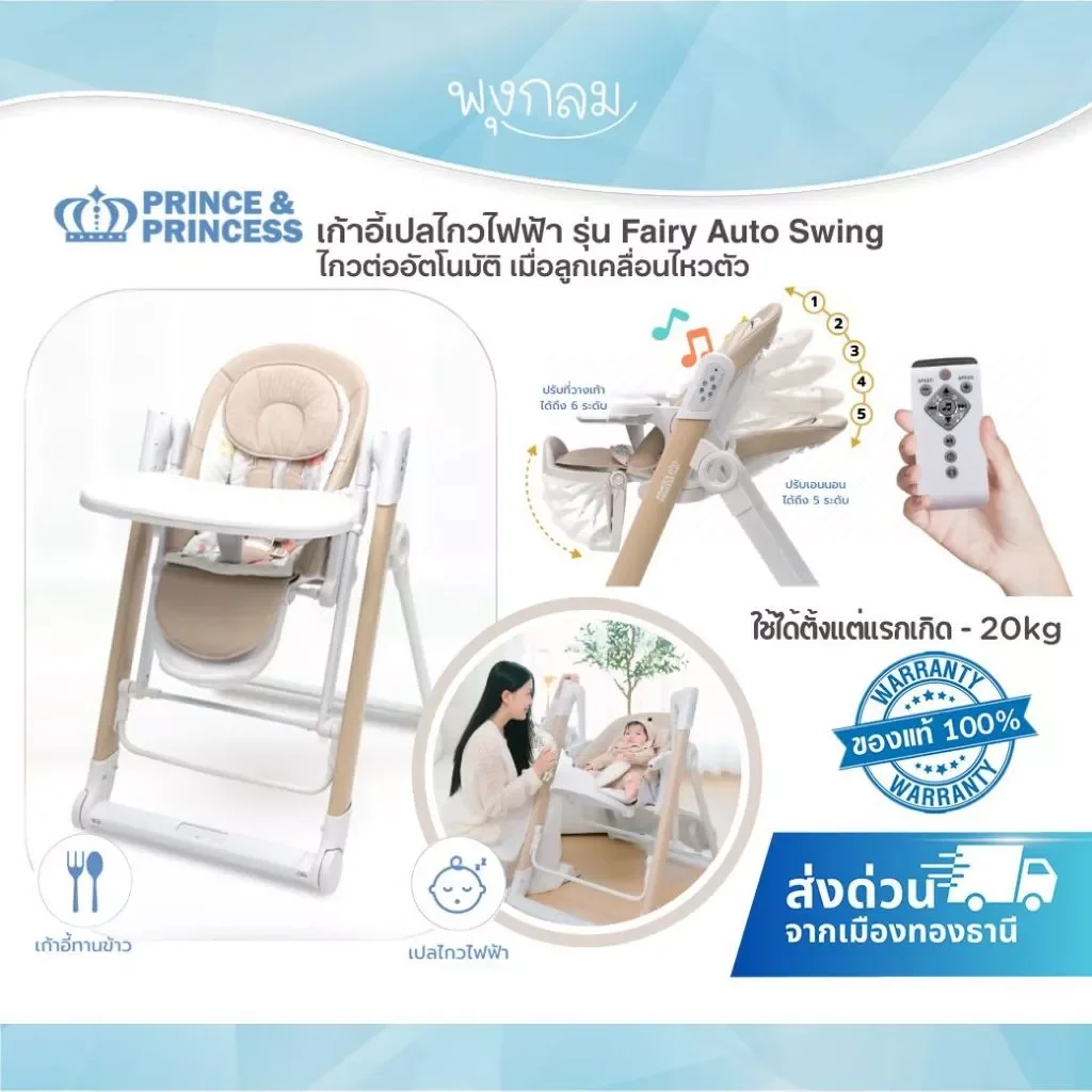 เปลี่ยนเรื่องการกล่อมลูกนอนและการทานข้าวให้เป็นเรื่องง่ายด้วย Fairy Auto Swing จาก PRINCE & PRINCESS นวัตกรรมเก้าอี้อเนกประสงค์แบบ 2-in-1 ที่ออกแบบมาเพื่อรองรับสรีระของลูกน้อยตั้งแต่วัยแรกเกิดจนถึงเด็กโต มอบประสบการณ์การพักผ่อนเสมือนอยู่ในอ้อมกอดคุณแม่ด้วยระบบไกวอัจฉริยะ