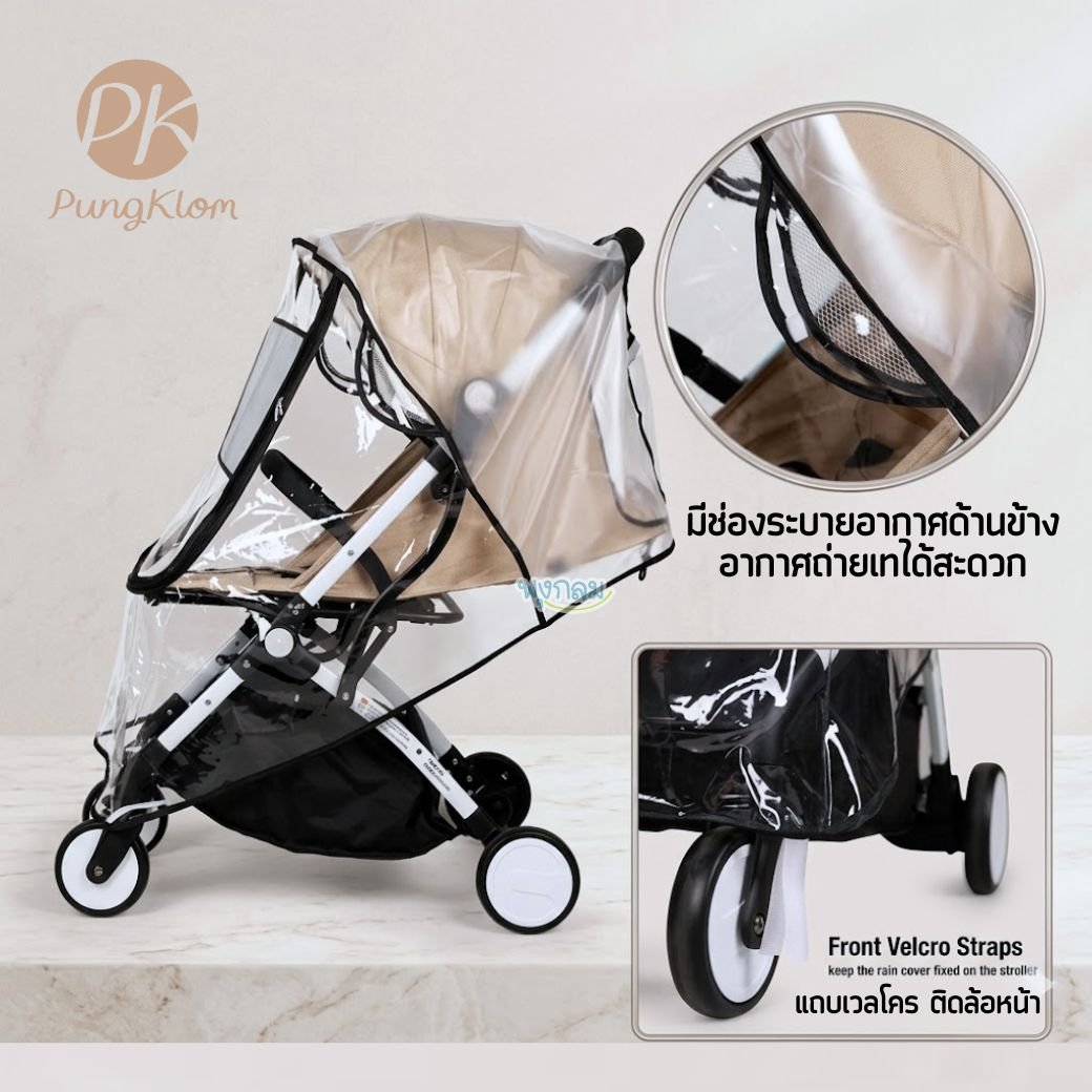 เปลี่ยนวันฝนตกหรือลมแรงให้เป็นเรื่องง่ายด้วย Premium Stroller Rain Cover ผ้าคลุมกันฝนเกรดพรีเมียมที่รวมฟังก์ชันการปกป้องรอบทิศทางเข้ากับดีไซน์มินิมอล ช่วยให้ลูกน้อยแห้งสบาย ปลอดภัยจากฝุ่นละอองและเชื้อโรค โดยไม่เสียทัศนวิสัยในการมองเห็น